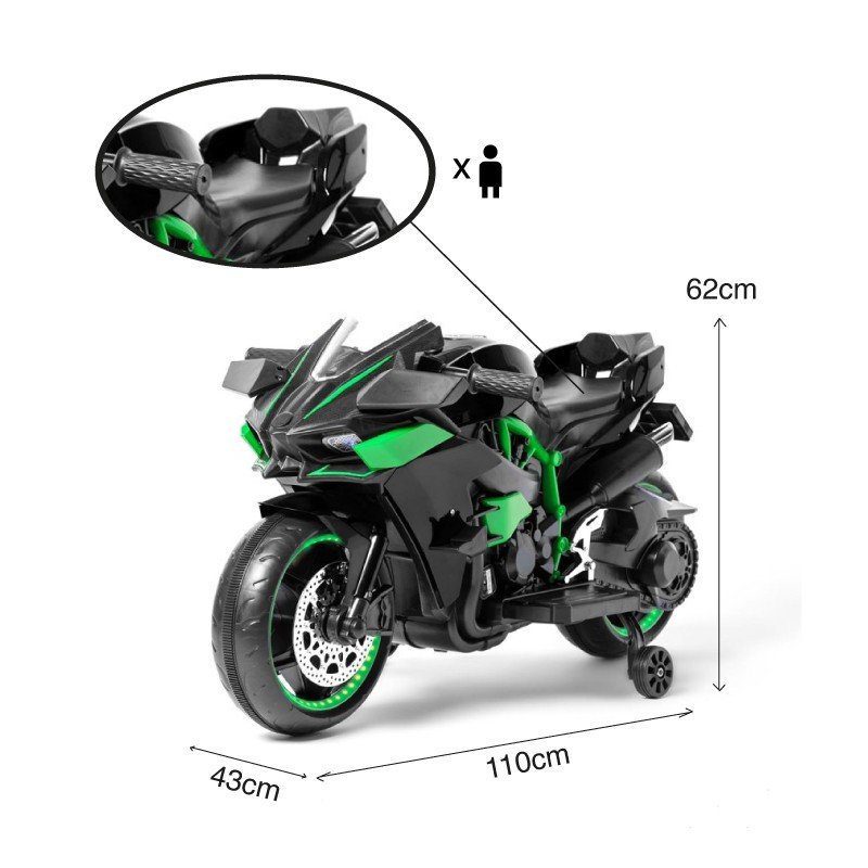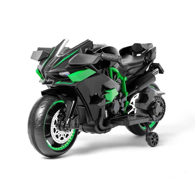Moto elétrica infantil grande com um design atraente e moderno. A moto infantil Matrix 12V funciona com um motor potente e incorpora rodas de apoio para facilitar a condução do pequeno motociclista.