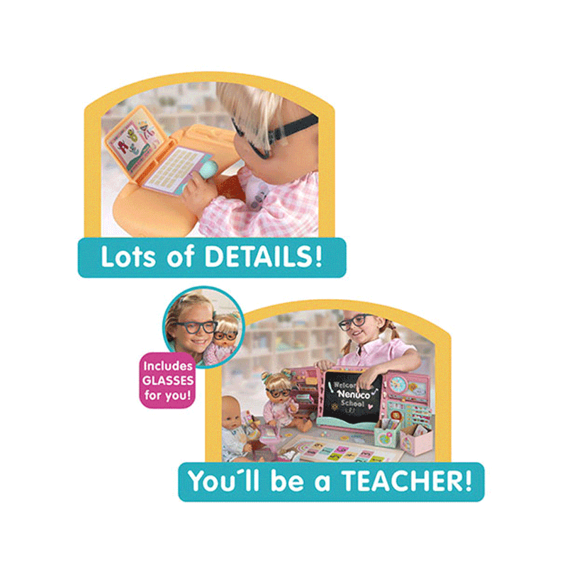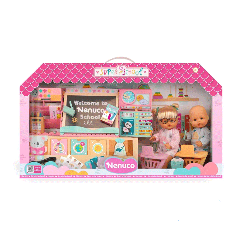 O Nenuco Escola traz toda a magia do ambiente escolar para a brincadeira! Com dois bonecos Nenuco de 35 cm, com corpo rígido e detalhes realistas, as crianças podem criar histórias cheias de imaginação na escola dos seus sonhos.