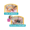 Com mais de 17 acessórios incríveis, entre material escolar e elementos de jogo, as possibilidades são infinitas. As crianças podem montar a sala de aula ao seu gosto, desenvolver habilidades motoras e sociais e representar inúmeras situações do dia a dia escolar.