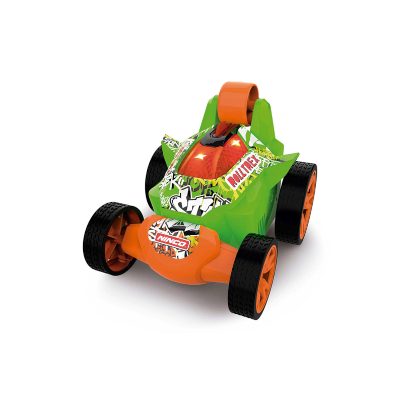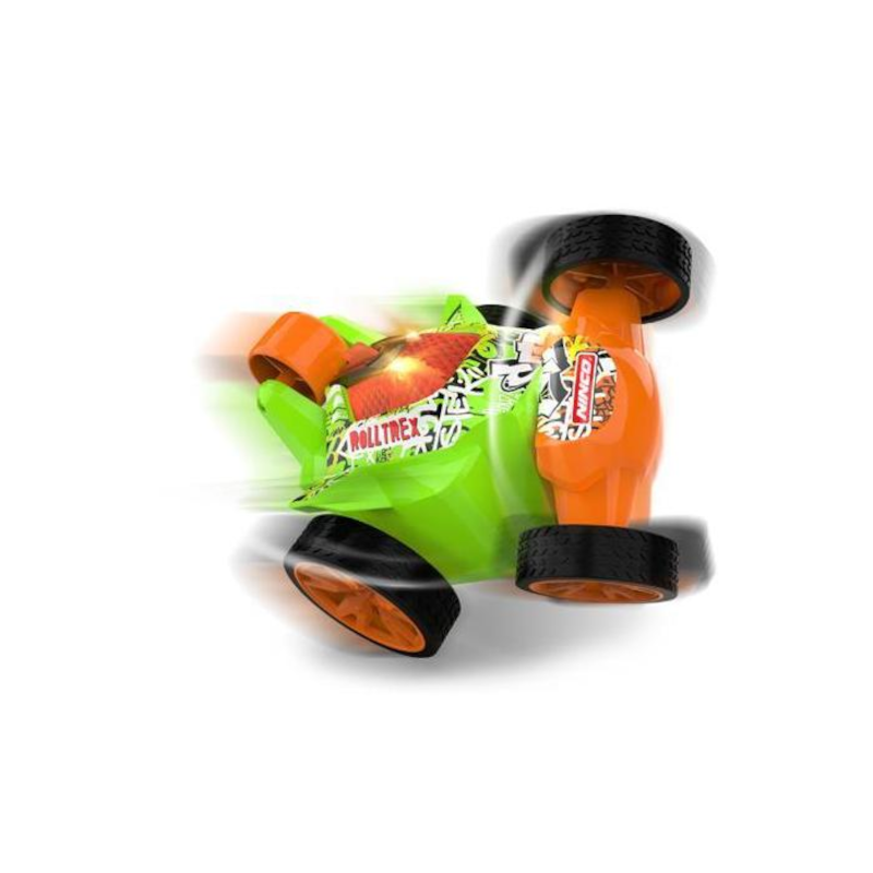 Carro acrobático rádio controlo, 360º com luzes, tração nas rodas traseiras que permite arranques em forma de cavalinho, rodas dianteiras giratórias, rodas de borracha.