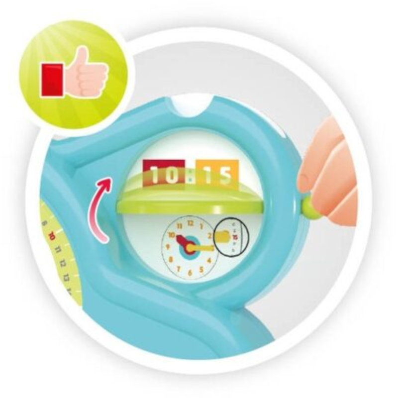 A criança escolhe o mostrador para aprender a ler as horas gradualmente.