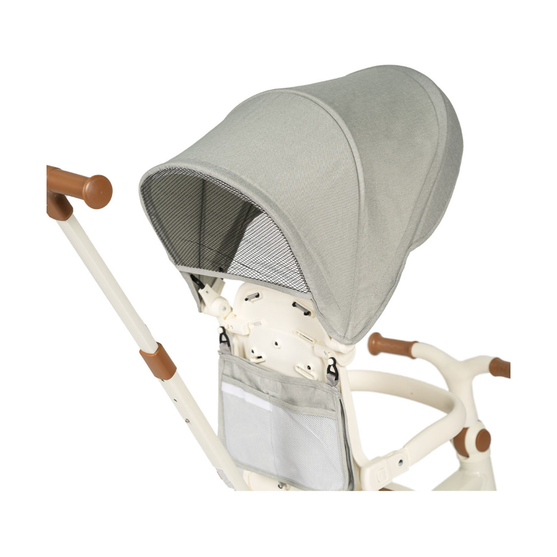 É adequado para crianças de 12 meses e inclui com uma barra removível que pode ser colocada na parte traseira do triciclo para ajudar o pequeno a começar com mais segurança.