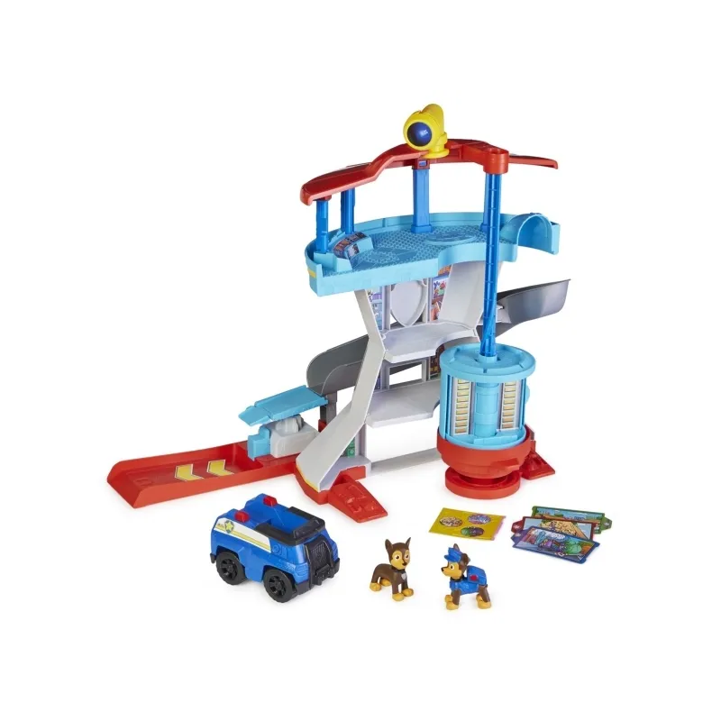O Chase está pronto para a ação com o incrível playset Torre de Observação da Patrulha Pata! Este conjunto exclusivo inclui a famosa Torre de Observação da série, a viatura policial do Chase e duas figuras do herói canino: Chase Fora de Serviço e Chase Herói!