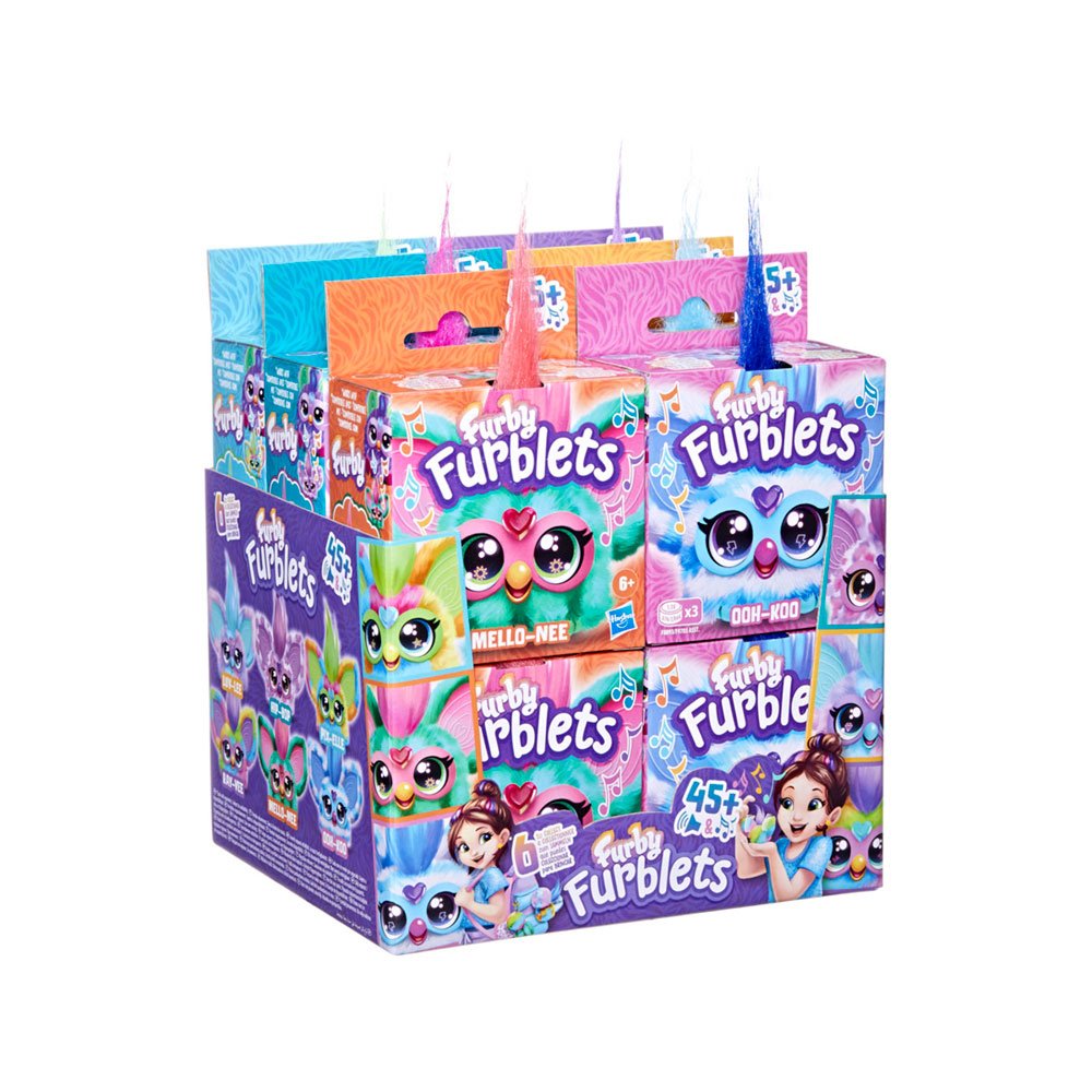 Os Furblets são peluches musicais cheios de personalidade e diversão! Inspirados na linguagem clássica do Furby, estes pequenos amigos de 5 cm trazem sons eletrónicos e frases hilariantes em Furbish que vão encantar meninos e meninas. Pressiona o bico para ouvir sons engraçados de “comer” e toca na joia em forma de coração para desfrutar de música animada. A parte superior da cabeça ativa frases divertidas e funciona como um prático interruptor de ligar e desligar.