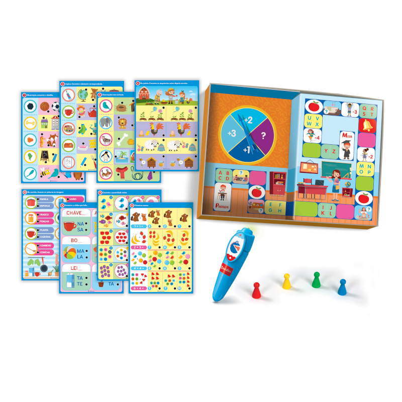 O Interactive Pen – Jardim de Infância da Clementoni é um jogo educativo completo com tabuleiro de atividades e uma caneta interativa que guia a criança na aprendizagem, tornando cada desafio uma experiência envolvente e motivadora.