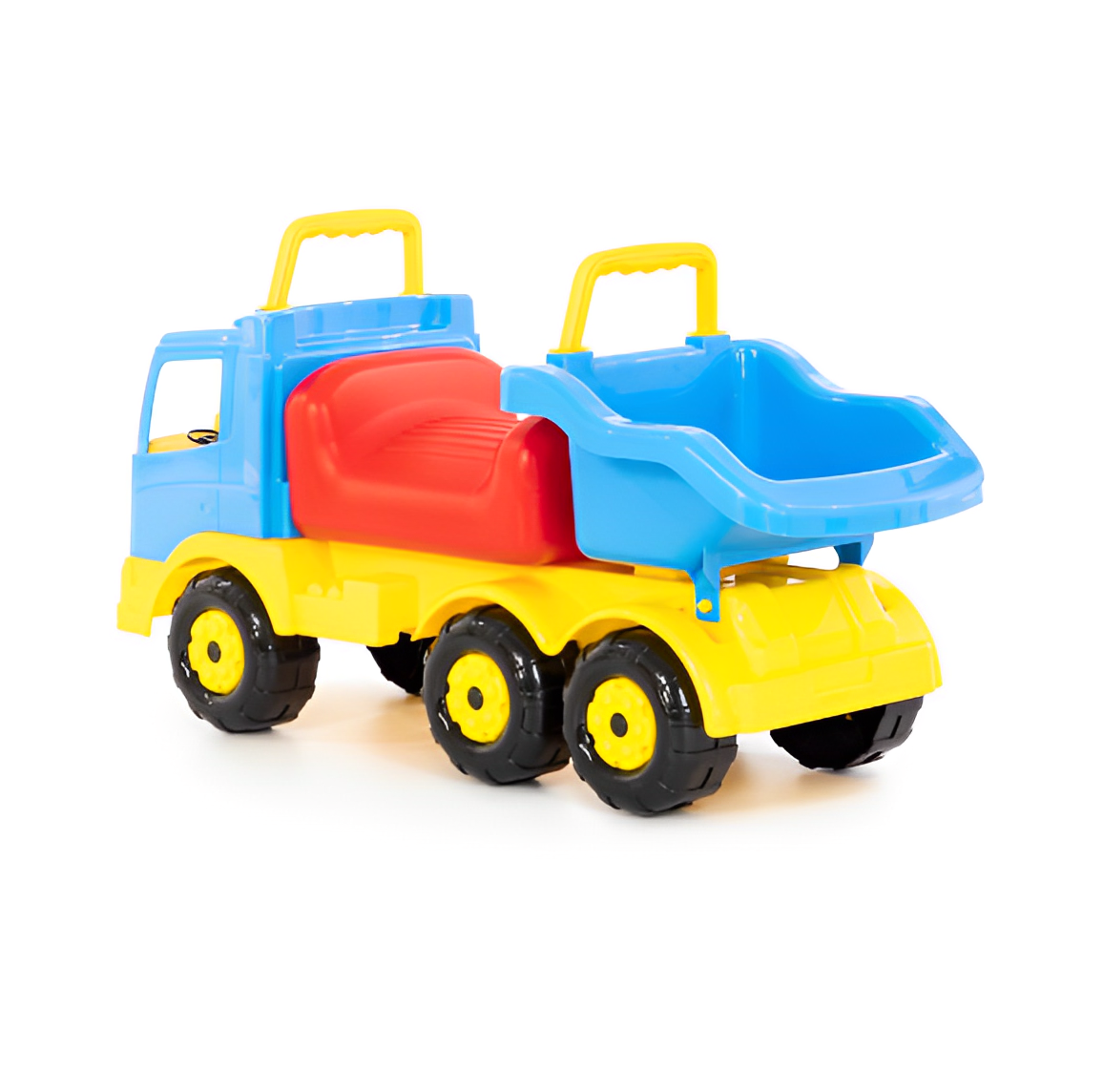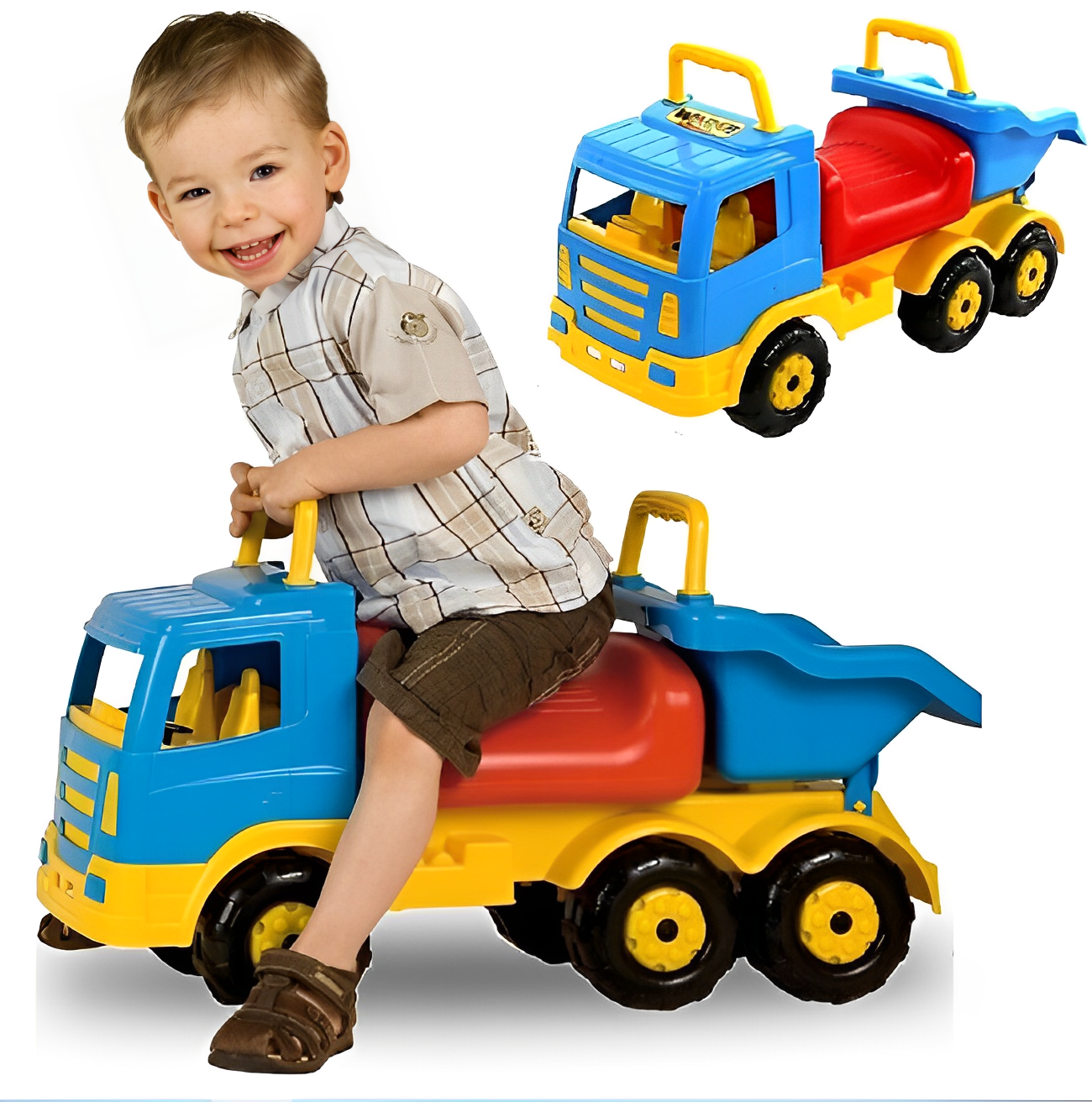 Com este camião/andador que mede cerca de 65cm de comprimento irá fazer certamente os mais pequenos felizes.  Poderão transportar os seus brinquedos nos dias de chuva dentro de casa , ou então nos dias de sol levar o camião para o campo ou praia e brincar de variadas formas.