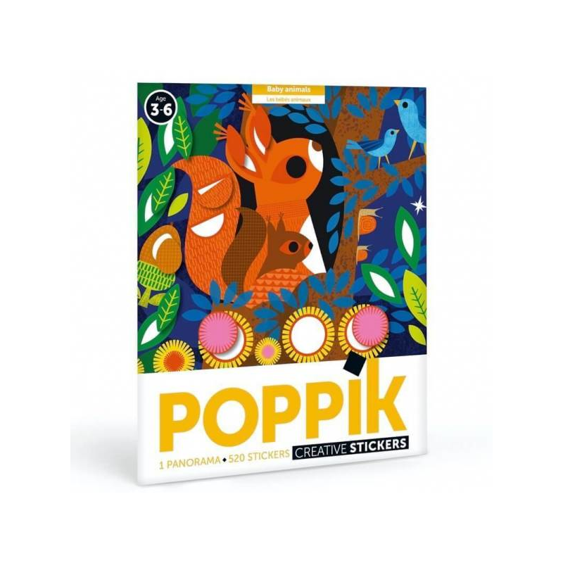 Descubra o envolvente Panorama “Os Bebés Animais no Bosque” da Poppik, uma atividade cativante para crianças de 3 a 6 anos. Esta emocionante experiência manual apresenta um amplo panorama moderno e colorido, repleto de animais adoráveis, como coelhos, esquilos, corujas, raposas e ursos. Com 520 autocolantes coloridos à disposição, seu filho terá a oportunidade de completar essa cena encantadora de uma floresta habitada por bebés animais irresistíveis.
