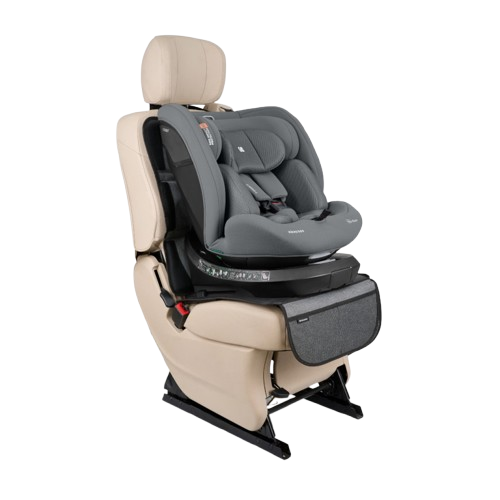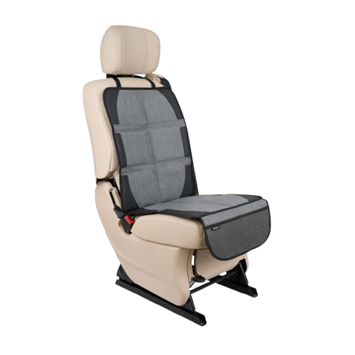 Protetor de assento concebido para utilização com cadeiras auto infantis, ajudando a preservar o estofamento do veículo e a manter a cadeira estável durante a viagem.