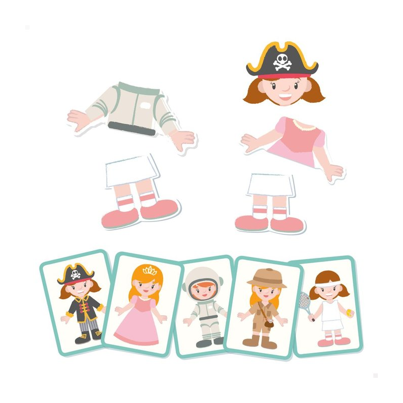 Este puzzle é magnético onde podes combinar e criar looks incríveis com peças.