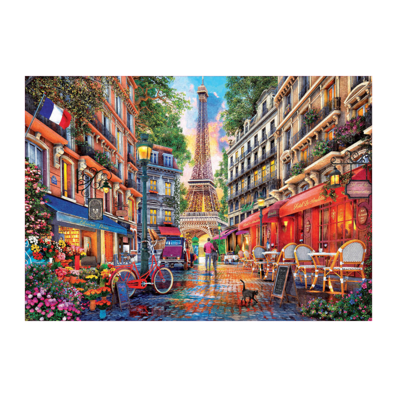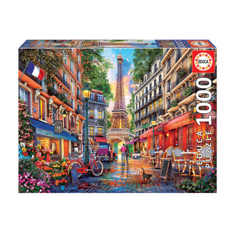 O Puzzle Paris, Dominic Davison de 1000 peças da Educa é uma escolha sofisticada para amantes de puzzles que procuram um desafio envolvente aliado a uma imagem elegante e detalhada. A ilustração transporta para um cenário romântico da cidade de Paris, criando, assim, uma experiência imersiva e, além disso, visualmente deslumbrante. Com um nível de dificuldade mais elevado, é ideal para quem gosta de testar a sua paciência e, por outro lado, desenvolver a concentração.