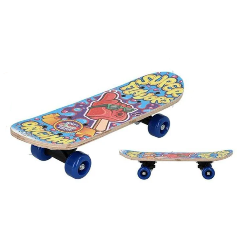 O skate pequeno tem uma parte superior robusta com aderência extra graças à estrutura na parte superior.