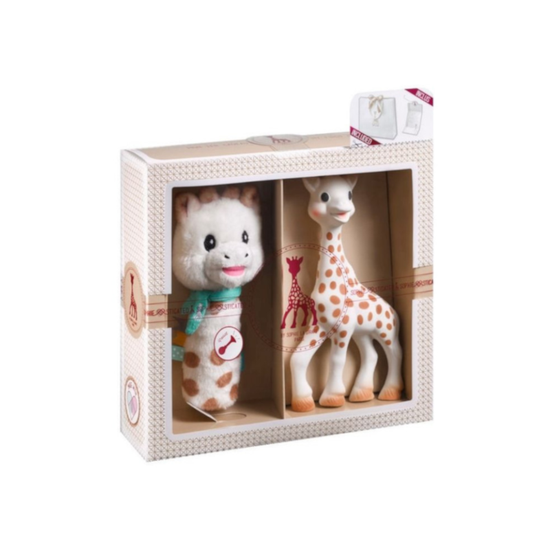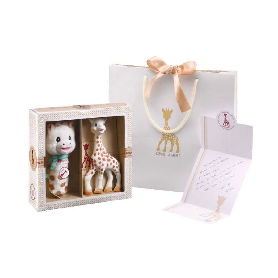 Este fabuloso conjunto para crianças e suas mães é perfeito se você está procurando presentes originais para dar a um bebé, e inclui: A famosa Sophie la girafe, conhecida por ser o primeiro brinquedo do bebé que desperta todos os seus sentidos.