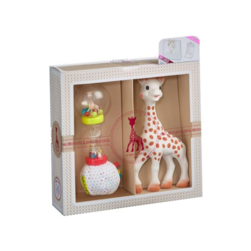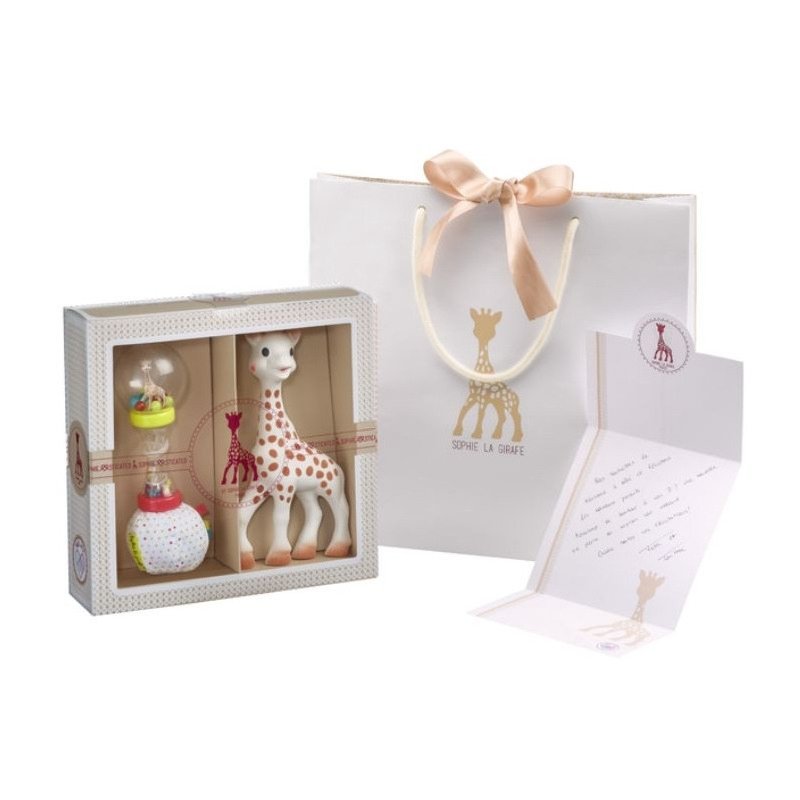 • Sophie la girafe, um mordedor clássico que é o primeiro brinquedo que desperta todos os sentidos do bebé.