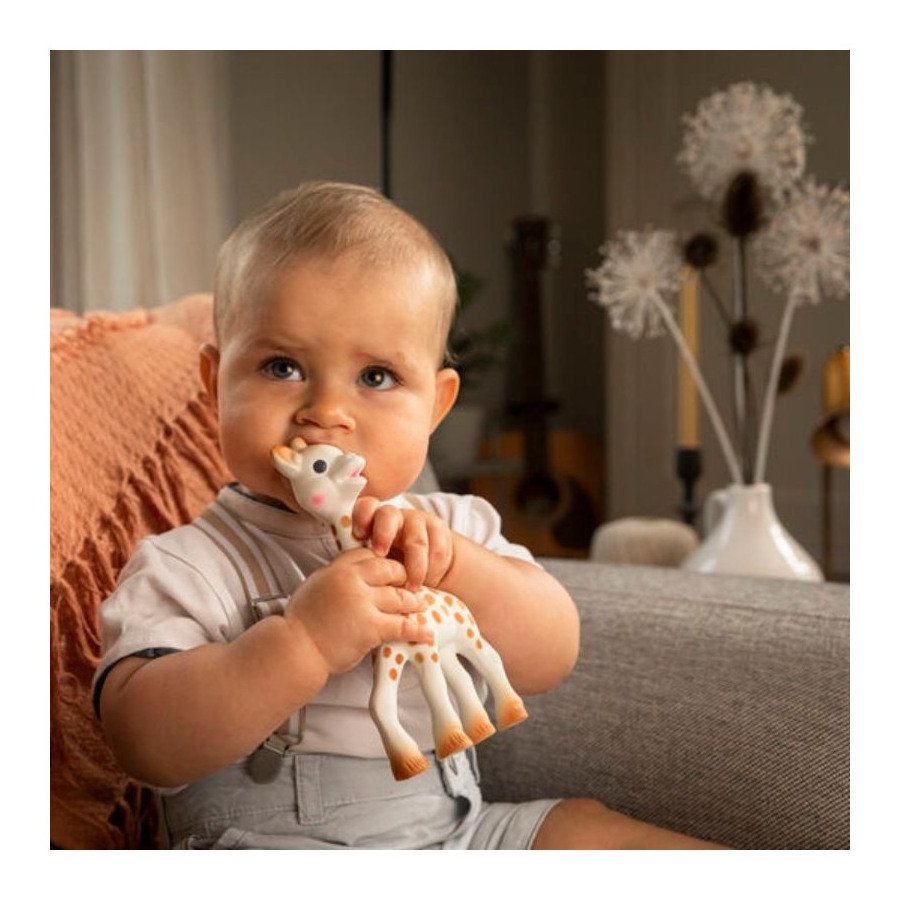 Vale lembrar que a Sophie la girafe é feita com materiais sustentáveis e naturais, por isso respeita o planeta e o meio ambiente o que também é bom para o bebé.