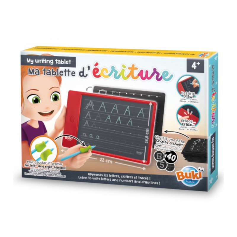 Além disso, aprenda a desenhar linhas curvas e retas. A criança coloca uma folha embaixo do tablet e pratica traçando as linhas de cada folha. Apague simplesmente pressionando o botão! Escreva usando a caneta como se fosse uma caneta. Adicione a alça para aprender como segurar a caneta corretamente. Essa alça também pode ser usada em uma de suas próprias canetas.