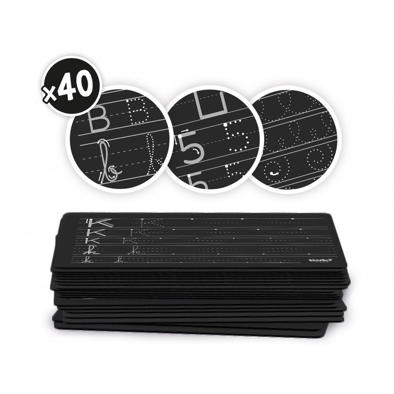 Um tablet com tela LCD para aprender a escrever as letras do alfabeto em letras maiúsculas e minúsculas, bem como números de 0 a 9.