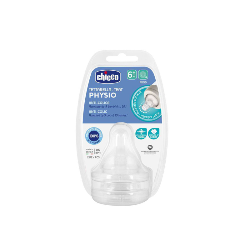 A forma pré-moldada, simétrica, plana e alongada do silicone facilita a aceitação do bebé, permite a fixação Correta dos lábios e o movimento peristáltico da língua durante a sucção.