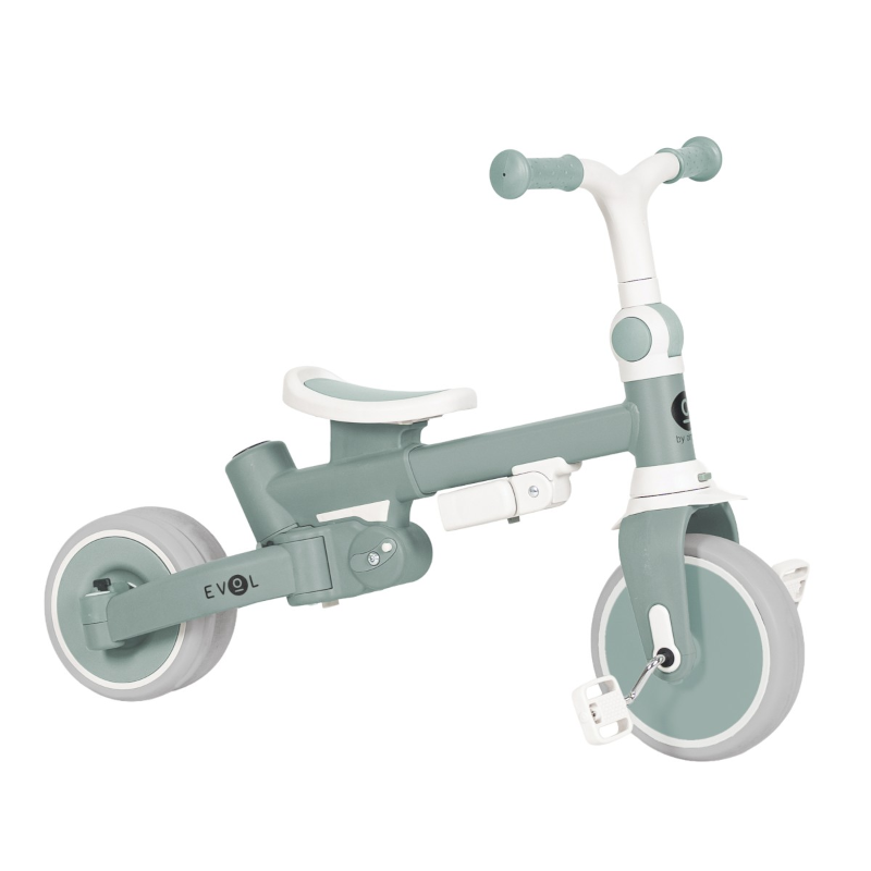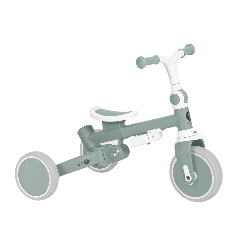 O Triciclo Multifuncional Evol Verde Menta foi desenvolvido para acompanhar o crescimento da criança desde os 12 meses, oferecendo versatilidade, conforto e segurança. Além disso, adapta-se facilmente a diferentes fases de desenvolvimento, permitindo a sua utilização como triciclo guiado, triciclo independente ou bicicleta de equilíbrio com ou sem pedais.